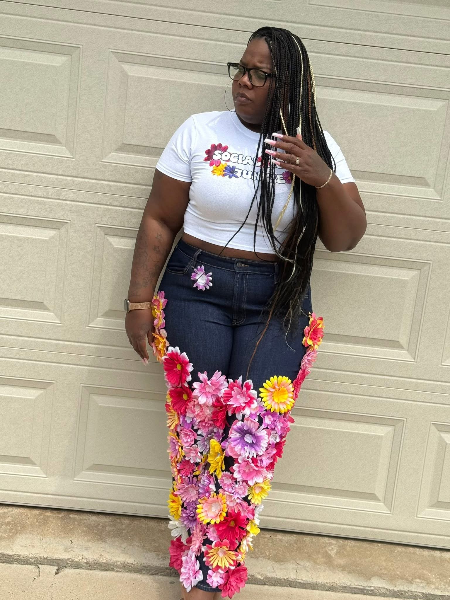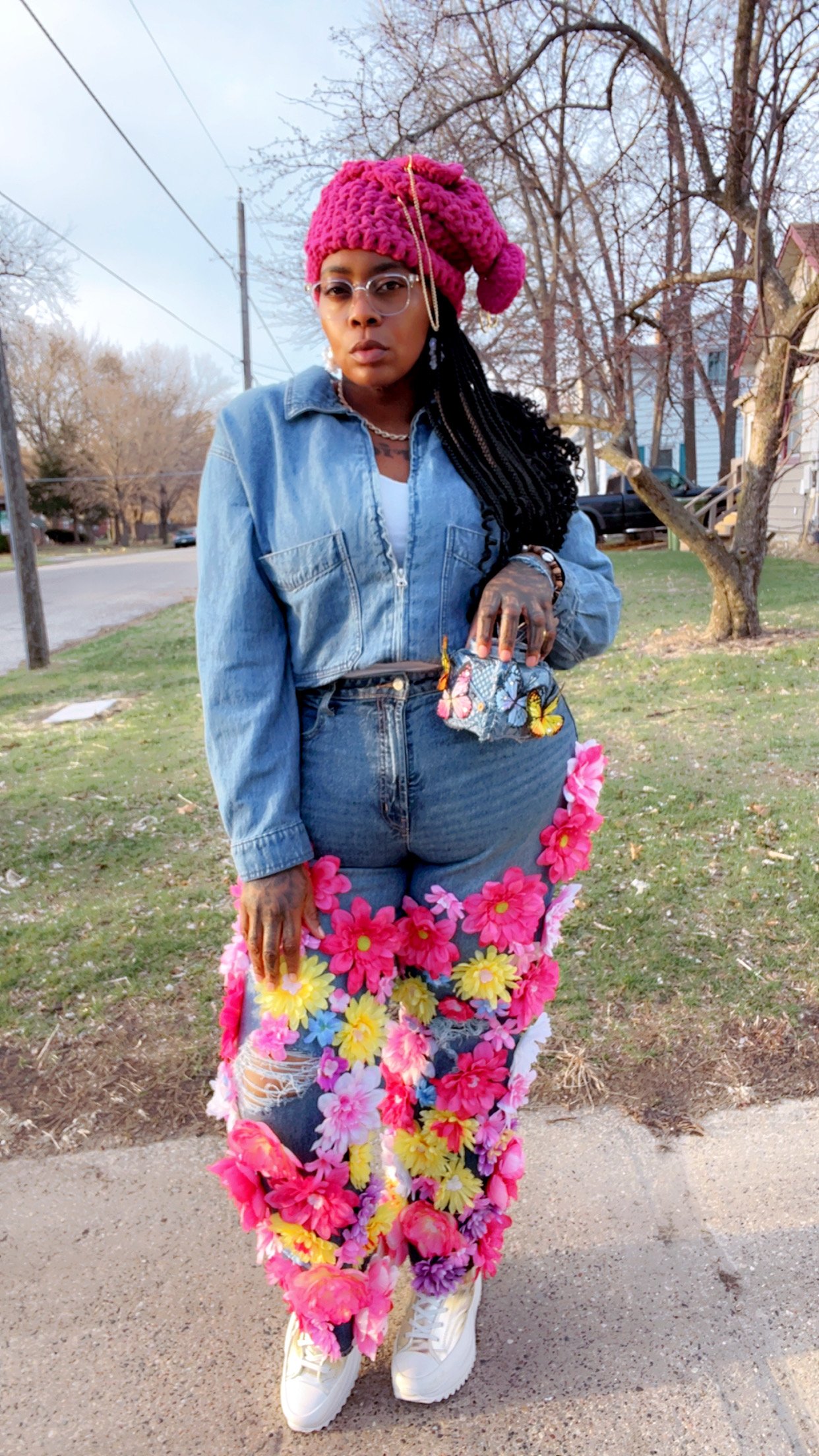 Each pair of jeans will have a different flower pattern flow, all jeans are one of one. Yea that’s right no pair will look the same.